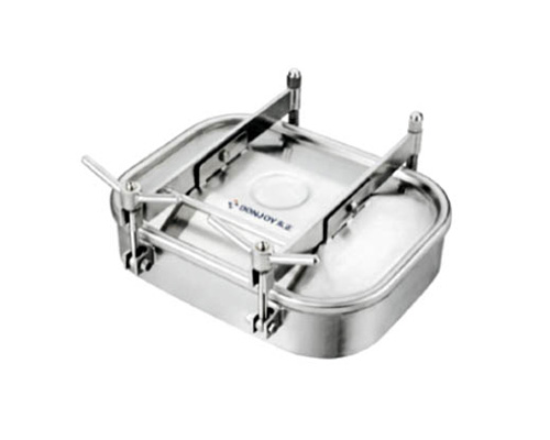 該人孔為方形外開式設(shè)計(jì),主要應(yīng)用在食品,釀酒,飲料,制藥等工業(yè)領(lǐng)域罐設(shè)備上。
